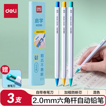 自营得力(deli)2.0mm启学自动铅笔趣味六角笔杆 儿童学生文具练字不断芯 3支笔混色笔杆 SH164-3