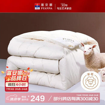 自营富安娜羊毛被51%新西兰进口羊毛被子 双人冬被冬季被芯约6.6斤203*229cm