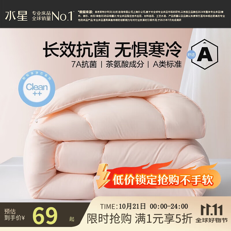 旗舰店水星家纺被子羊毛被 A类澳洲羊毛进口抗菌冬被加厚保暖秋冬单双人被芯 【澳洲进口&A类抑菌】四季被(粉) 150cm×210cm