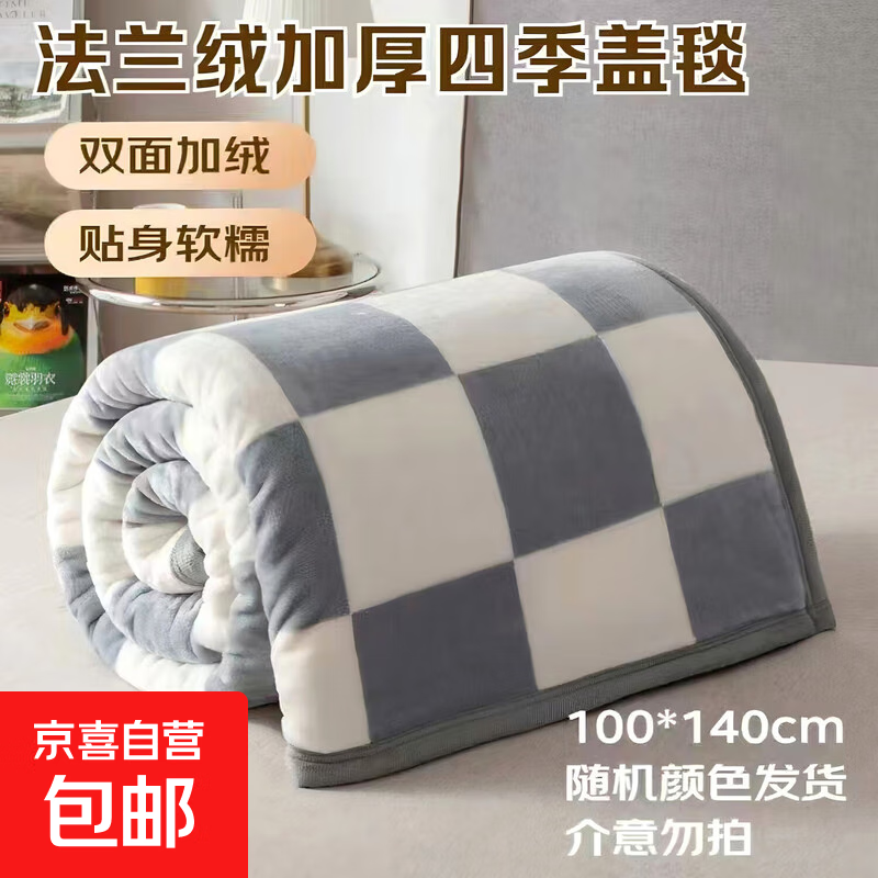 自营京东京造经典法兰绒毯 1150g空调毯加厚双面沙发午睡盖毯 高级灰1.5x2m