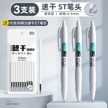 得力刷题笔ST头双核芯按动中性笔速干学生初高中生专用刷题笔黑笔替芯顺滑0.5碳素水笔签字笔S08 【双珠小白笔】3支速干ST尖+10支ST笔芯