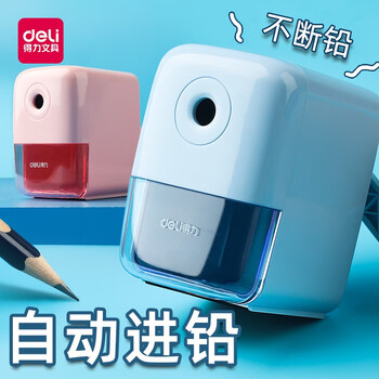 得力(deli) 卷笔刀手摇铅笔削笔器铅笔刀小学生刨笔机儿童卡通自动进铅转笔刀美术生可用 【简约款】自动进笔 蓝色