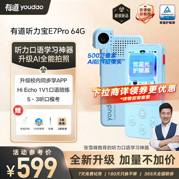 自营有道【重磅新品】AI听力宝E7Pro 64G 英语听力随身听磨耳朵英语学习神器英语宝听说宝复读机E6P升级
