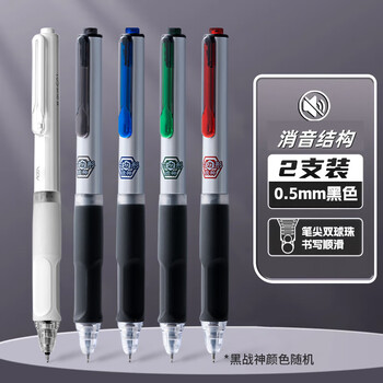 百亿补贴得力(deli)消音按动中性笔双珠st笔头六边形战士大容量速干刷题笔低噪音圆珠笔考试作业笔黑色签字笔安静笔 六边形战神【2支】速干 ST尖 消音 双珠