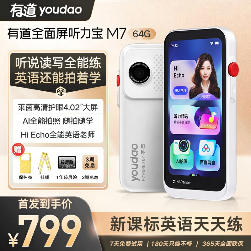 自营有道全面屏听力宝M7 64G【高考原声】复读机英语宝古诗词英语听力随身听磨耳朵学习提升神器口袋学习机