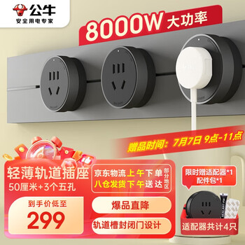 公牛轨道插座移动滑轨厨房餐边柜暗明装家用磁吸电力导轨滑动插排
