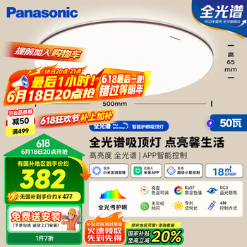自营松下(Panasonic)吸顶灯智能APP全光谱卧室灯 IP40护眼灯50瓦HHXS5166【包安装】