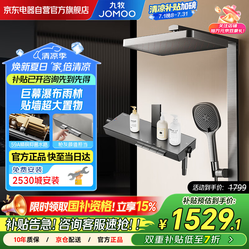 自营恒洁(HEGII)淋浴花洒套装Y55 按键大平台智能自动除垢花洒全套HMF938-333-SH