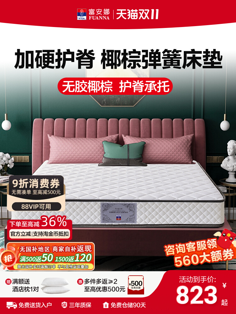 旗舰店富安娜床垫天然椰棕床垫加硬护脊棕垫席梦思弹簧床垫老人棕榈硬垫