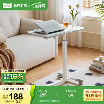 旗舰店林氏家居电脑桌升降书桌学生家用写字电脑桌移动床笔记本写字桌子BG048 【白色|手动】升降边桌