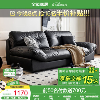 自营全友家居意式简约风头层牛皮床头软包靠背卧室1.8米×2米真皮双人大床