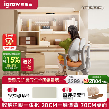 自营爱果乐(IGROW)咖啡猫2.0儿童学习桌书桌椅套装写字桌升降中小学生家用课桌1.2m