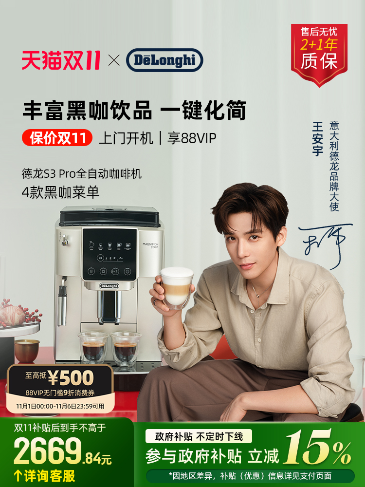 旗舰店delonghi德龙 S3 Pro 全自动咖啡机意式进口家用现磨办公室小型