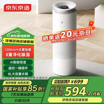 自营京东京造 智能无雾加湿器 家用卧室轻音 1200ml加湿量 8重净化除菌 智能恒湿 遥控操作 8L大水箱 睡莲Pro