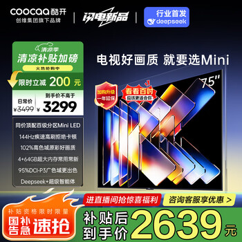 自营酷开创维75K6 Mini 75英寸电视 百级分区Mini LED 4+64GB一级能效 以旧换新补贴 大屏AI游戏电视75P5F