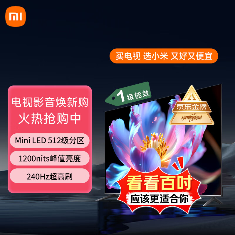 自营小米电视75英寸E-5Q PRO MiniLED 4+64G 1200nits家电显示器智慧屏大屏平板 彩电家庭影院L75MB-SPL