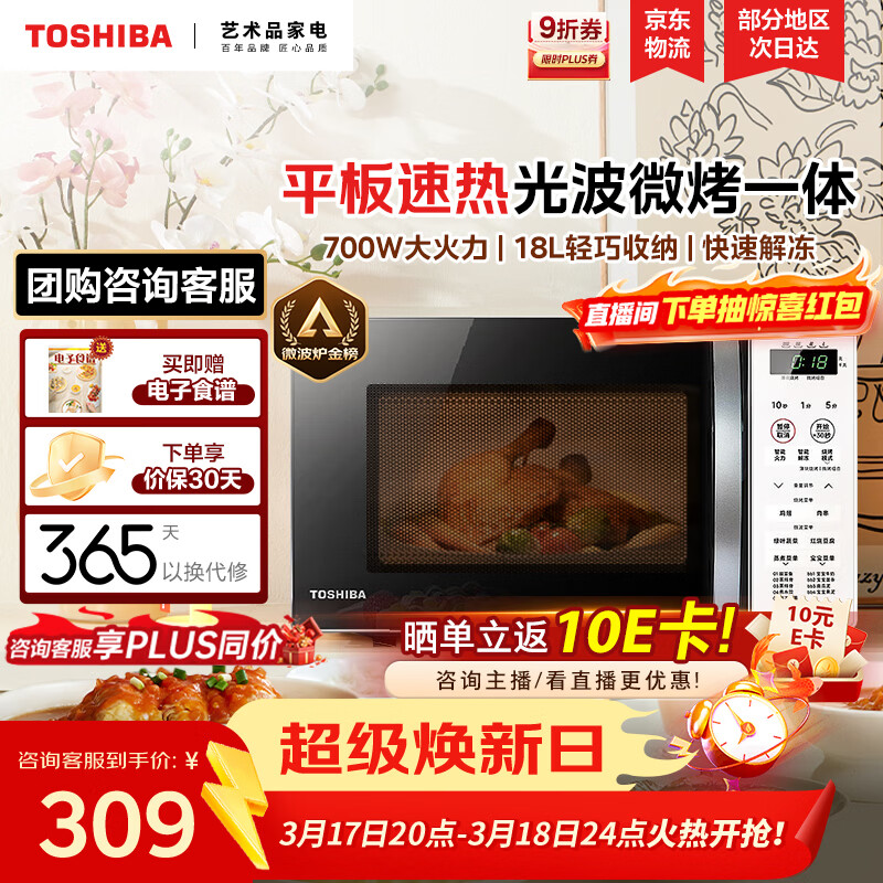 自营东芝(TOSHIBA)微波炉烤箱一体机 光波家用微波炉mini小型平板式易清洁功能小型烧烤智能解冻18L ER-R200ACNW