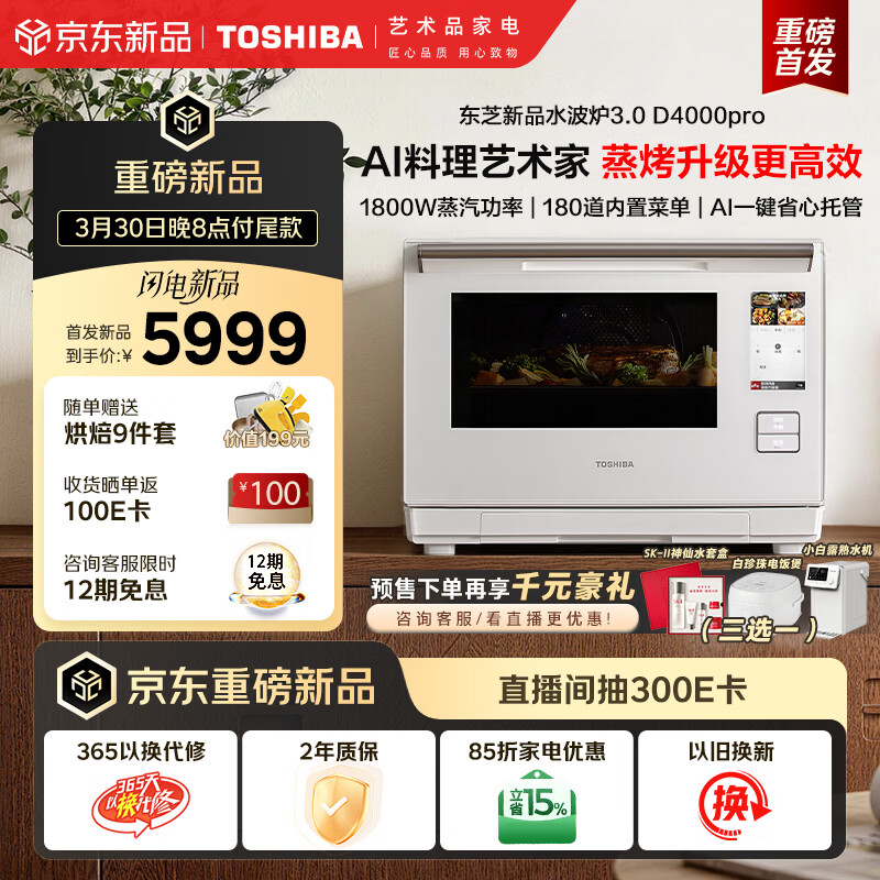 自营东芝(TOSHIBA)东芝水波炉D4000pro新品轻奢3.0水波炉微蒸烤一体机AI智能石窑烤蒸烤一体微波炉