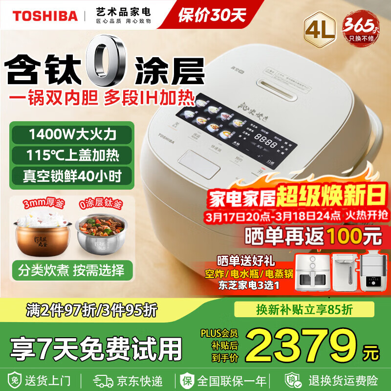 旗舰店东芝(TOSHIBA)小白露pro真空高端电饭煲2-5人 家用电饭锅IH加热4升一级能效 316L不锈钢0涂层 3mm本丸釜 小白露pro丨双内胆 4L RC-15VSVC(WY)