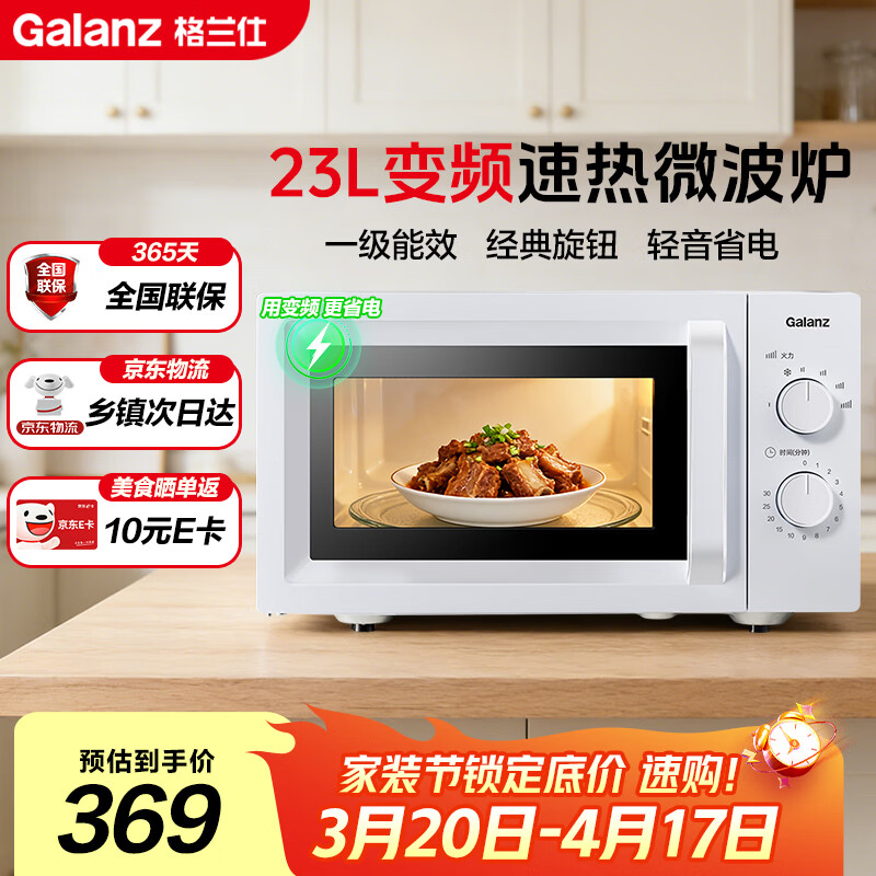 自营格兰仕(Galanz)变频微波炉家用 23L大容量 一级能效省电 360°转盘加热 简易旋钮操控X50(变频节能款)