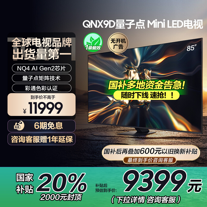 自营海信电视小墨E5Q Pro 85英寸超画质U+MiniLED 信芯芯片墨晶屏300Hz高刷85E5Q-PRO E5NPRO+升级国家补贴