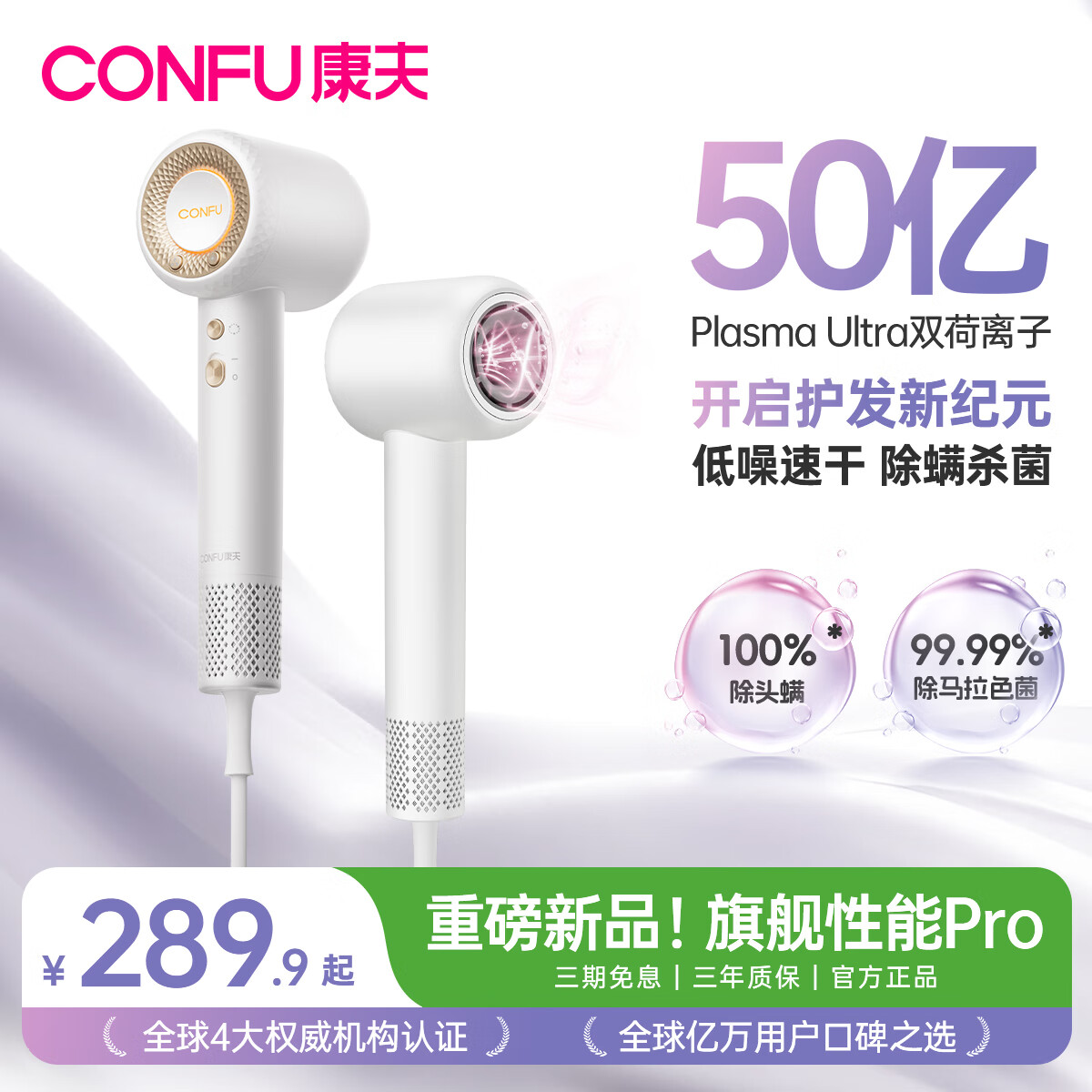 自营康夫(CONFU)高速电吹风机家用大功率50亿等离子速干护发除螨杀菌生日礼物送女友吹风筒F9 Pro皓金白