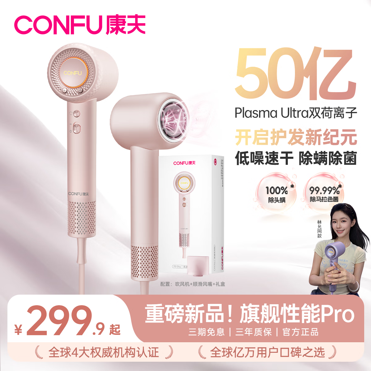 自营康夫(CONFU)高速电吹风机家用大功率50亿等离子速干护发除菌除螨生日礼物送女友吹风筒F9 Pro初樱粉