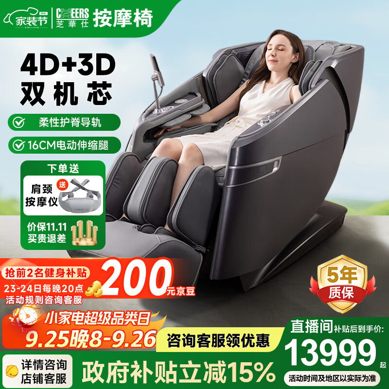 自营芝华仕家用全身智能全自动按摩椅揉肩颈 京东自营2025家用政府补贴送父母送长辈礼物M995深空黑-现货闪发
