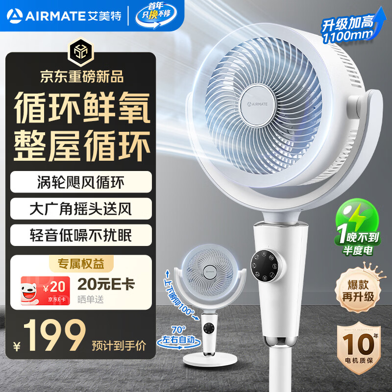 自营艾美特(AIRMATE)【小暴风PRO】空气循环扇家用大风量摇头电风扇卧室轻音桌面小风扇台式节能落地扇客厅电扇 X231