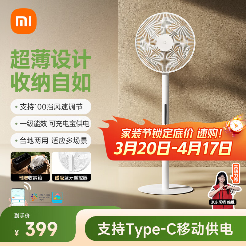 自营米家小米电风扇落地扇家用直流变频超静音自然风台地两用 轻音节能智能控制蓝牙遥控轻薄电扇Pro