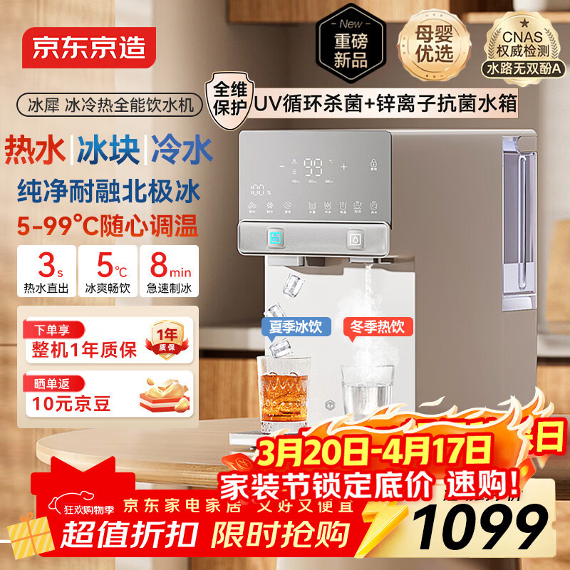 自营京东京造冰犀制冰冷热饮水机家用免安装 即热速冷制冰饮水机冷热一体机小型冰块制冰机桌面直饮水机 白色