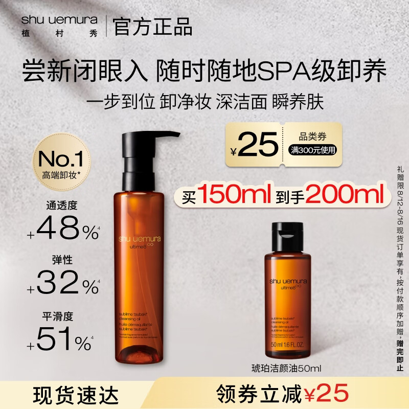 自营植村秀琥珀卸妆油150ml 养肤洁颜油深层清洁温和不刺激 七夕情人节礼物