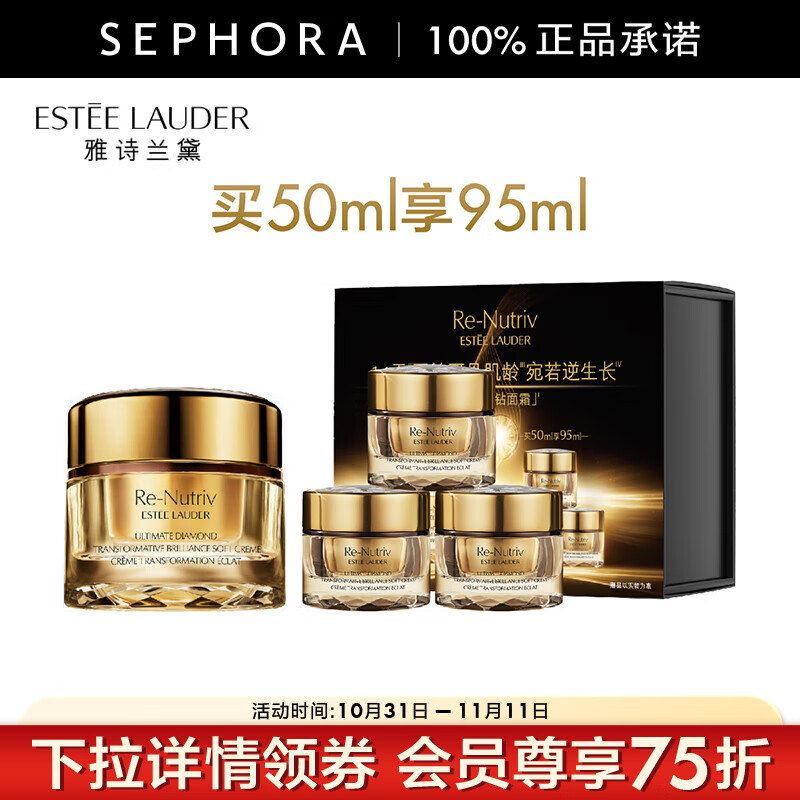 旗舰店雅诗兰黛(Estee Lauder)白金级蕴能黑钻光璨面霜 白金黑钻面霜 买50ml享95ml礼盒装