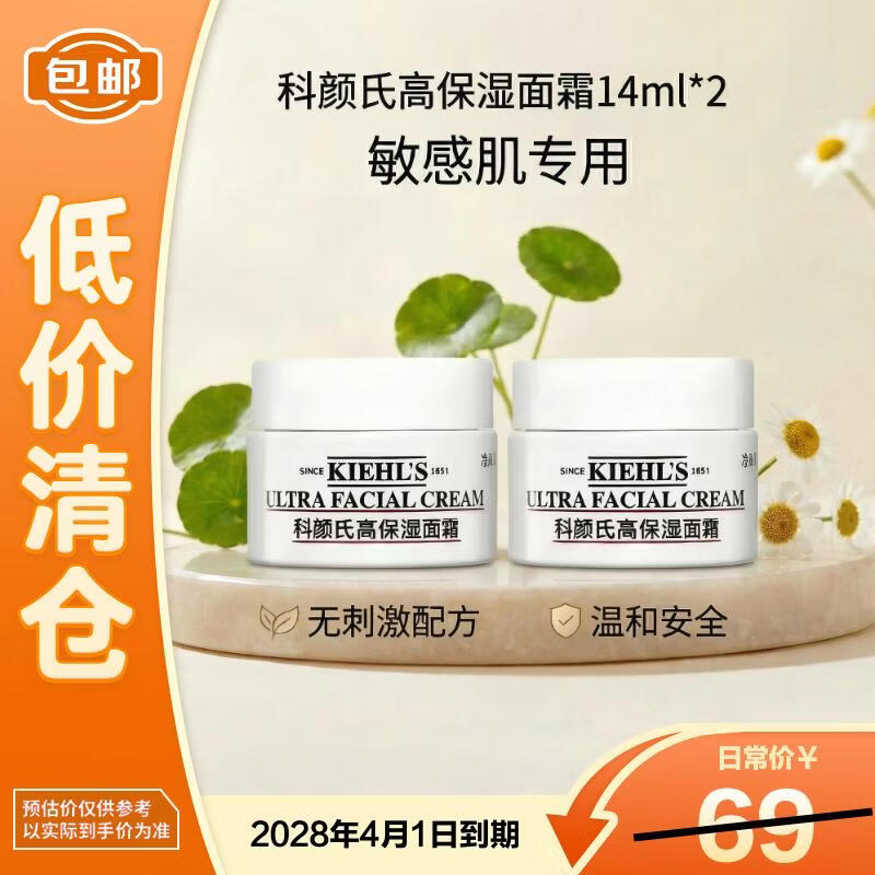 科颜氏高保湿面霜14ml*2【临期清仓】