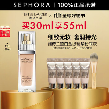旗舰店雅诗兰黛(Estee Lauder)白金级奢宠光璨精华粉底液SPF20/PA++++ 30ml 21号套组B