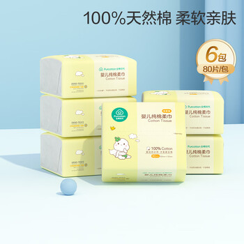 自营全棉时代婴儿棉柔巾洗脸巾干湿两用巾一次性洗面巾手帕加厚面巾,80片/6包