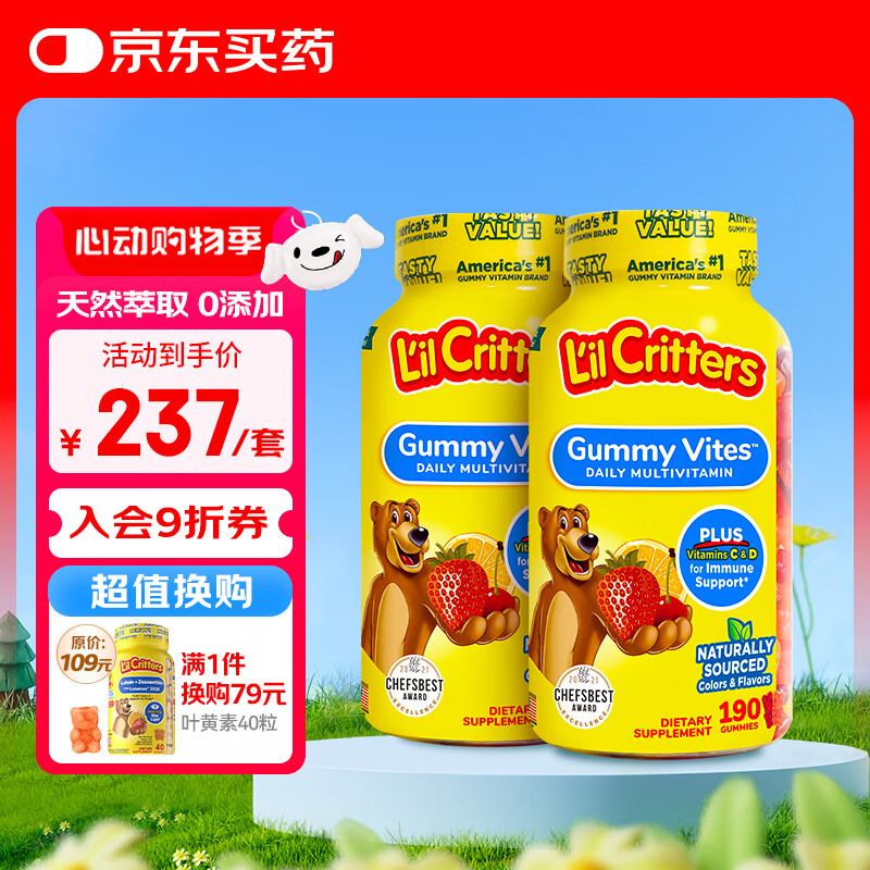 旗舰店小熊糖丽贵小熊糖Lilcritters儿童叶黄素复合维生素营养软糖 儿童复合维生素190粒*2瓶
