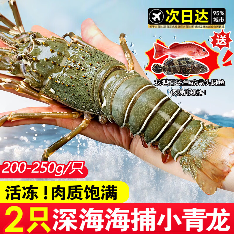 百亿补贴百鲜洽 小青龙虾新鲜海捕活冻特大青龙虾海鲜水产春节送礼团圆年夜饭 2只*200g-250g/只净重(青龙虾)