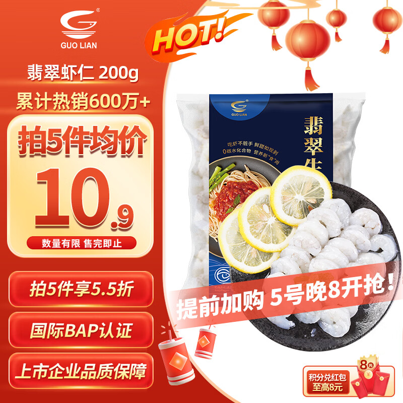 自营GUO LIAN国联 翡翠生虾仁 净重200g独立包装 31-40只 京东虾仁品质年货节