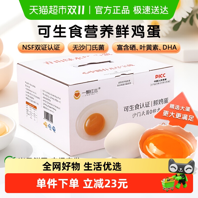 【下拉领补贴】一颗红心可生食认证鸡蛋DHA叶黄素新鲜无抗送礼盒