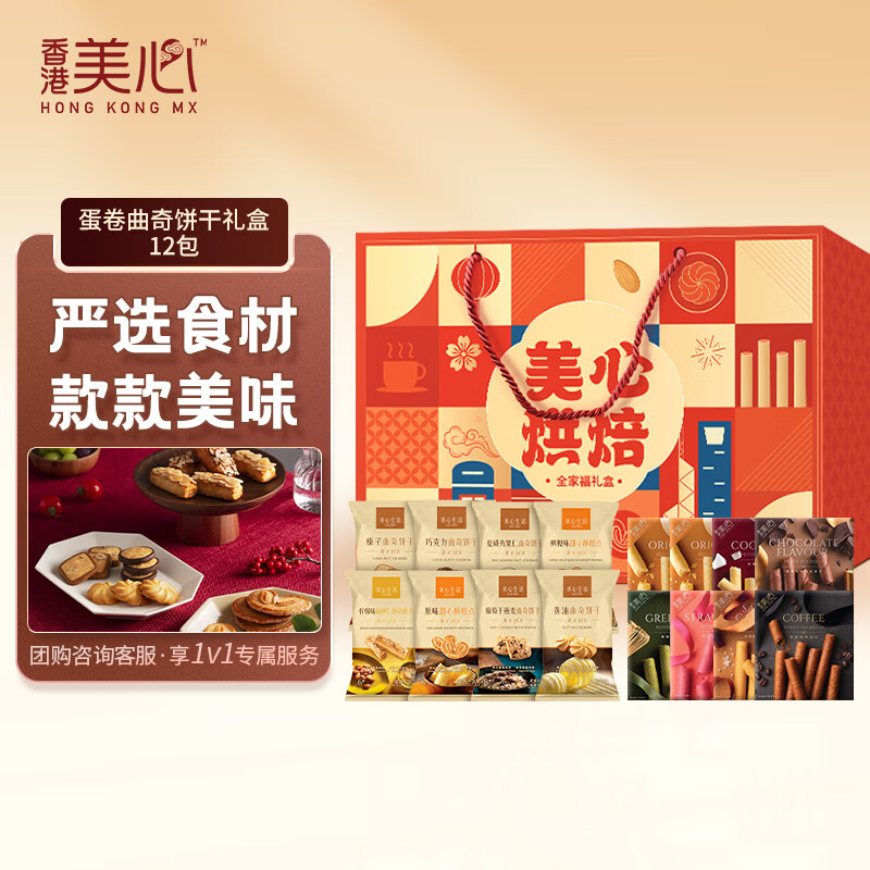 自营美心(Meixin)多口味十二包零食大礼包蛋卷曲奇饼干组合团购满月宴伴手礼