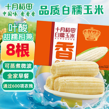自营十月稻田 白甜糯玉米4.16斤(260g*8穗) 低脂早餐 杂粮礼盒 微波即食