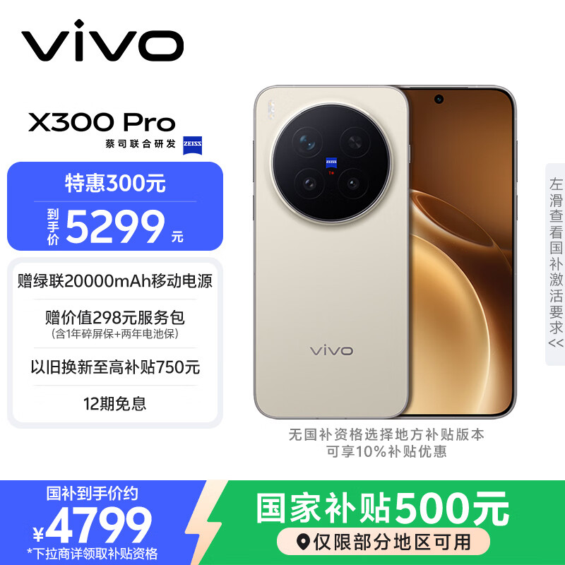 自营vivo X300 Pro 12GB+256GB 旷野棕 蔡司2亿APO超级长焦 蓝图影像双芯 5年持久流畅OriginOS 6 AI手机