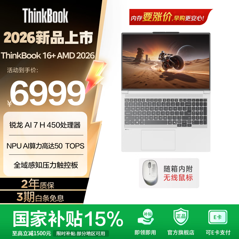 旗舰店ThinkPad联想ThinkBook16+笔记本电脑AI全能本 2026新品 星耀白 全新锐龙7 H450 32G 1T