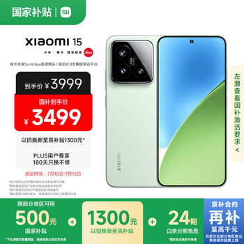 自营小米15 国家补贴 徕卡光学Summilux高速镜头 骁龙8至尊版移动平台 16+512 浅草绿 5g手机国补