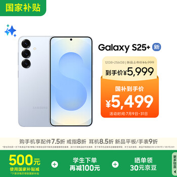 自营三星S25+ 256GB国家补贴 超拟人AI助理 骁龙8至尊版 AI拍照 翻译手机 游戏手机 冷川蓝