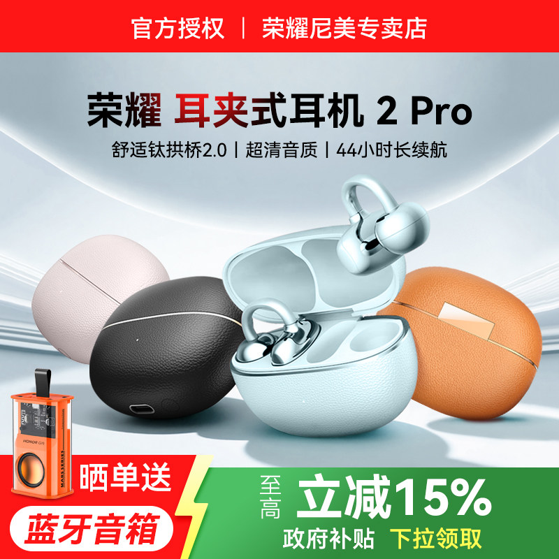 荣耀耳夹无线蓝牙耳机2Pro开放式运动长续航降噪官方旗舰正品新款