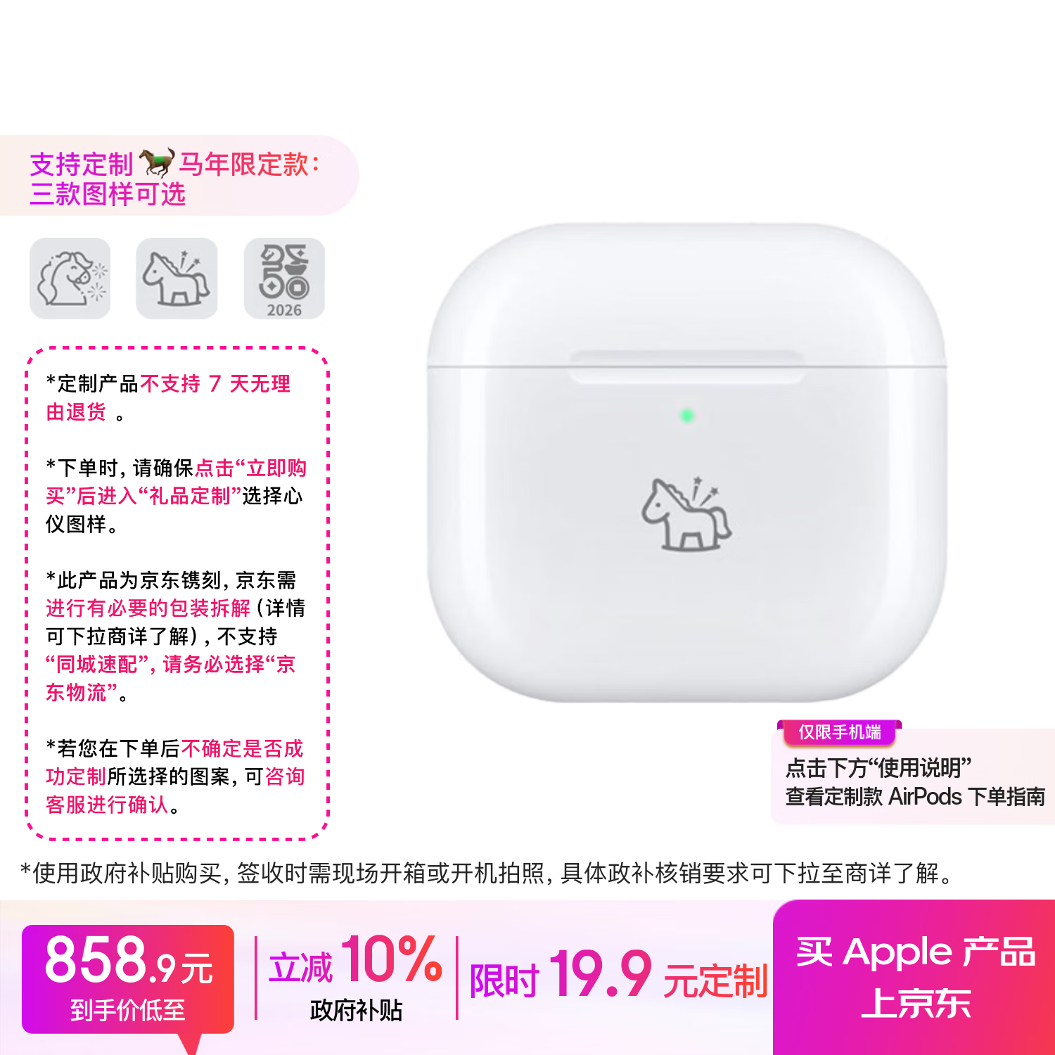 自营Apple/苹果 AirPods 4 图文定制版(支持定制马年新春限定款)