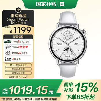 自营小米(MI)Xiaomi Watch S4 41mm 真皮白 国家补贴 汽车YU7钥匙 澎湃OS2 心率血氧监测 小米手表s4 小表女表