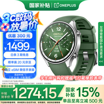自营一加手表 2 星云绿【国家补贴15%】智能健康手表 男女运动手表 eSIM电话手表 微信手表版 一加手表送礼